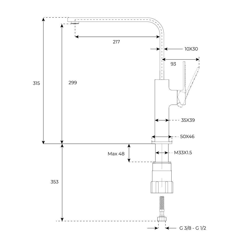 + L tipi döner başlıklı mutfak armatürü,