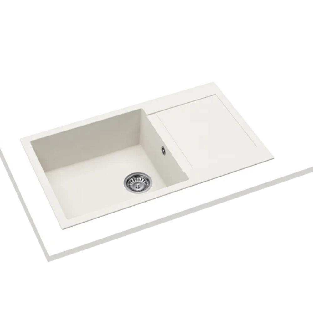 Clivo 60 B-TQ, tek hazneli ve damlalıklı tasarımıyla mutfakta fonksiyonel ve şık bir çözüm sunar. Beyaz Tequartz yüzeyi; darbe, termal şok ve yüksek sıcaklıklara karşı dayanıklı olup, yüksek UV direnci sayesinde uzun süre rengini korur. Kolay temizlenebilir ve gıda temasına uygun hijyenik yapısı ile günlük kullanım için idealdir.