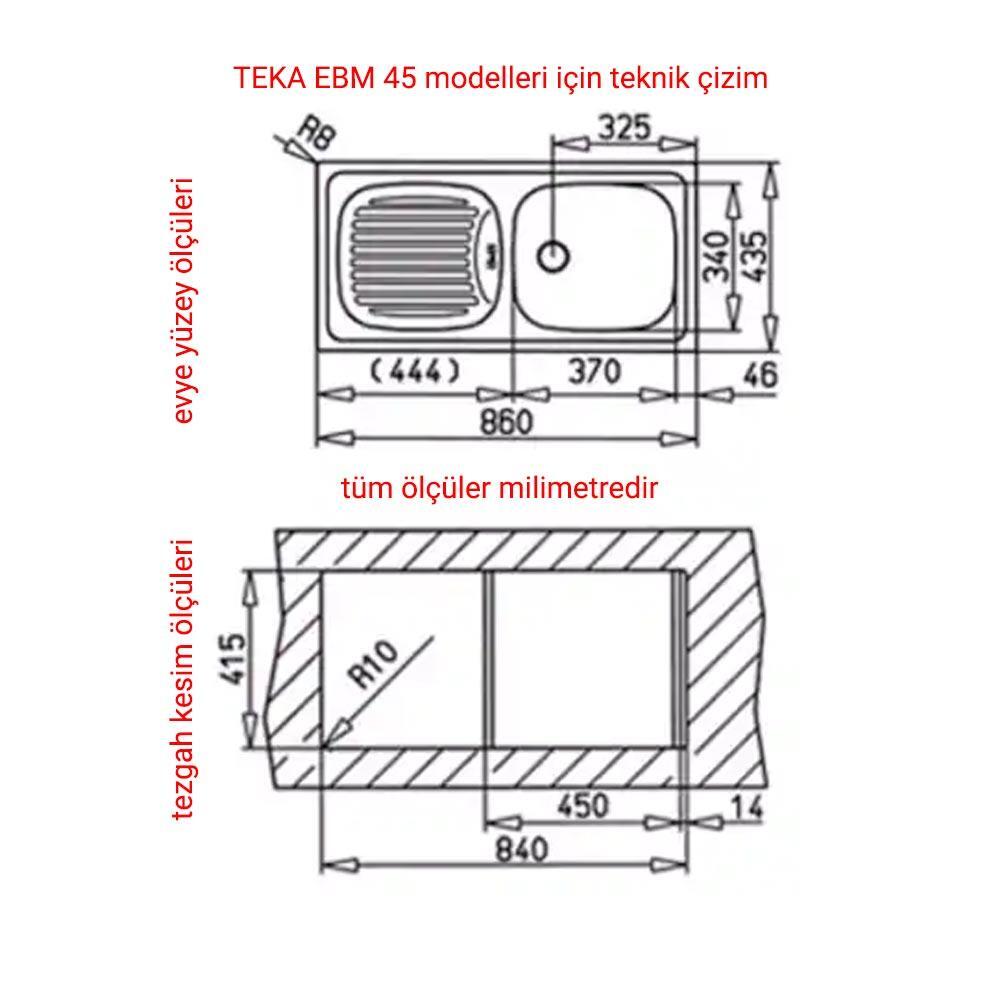 Teka EBM 45 Paslanmaz Çelik Evye, Tek hazne, Sağ damlalıklı