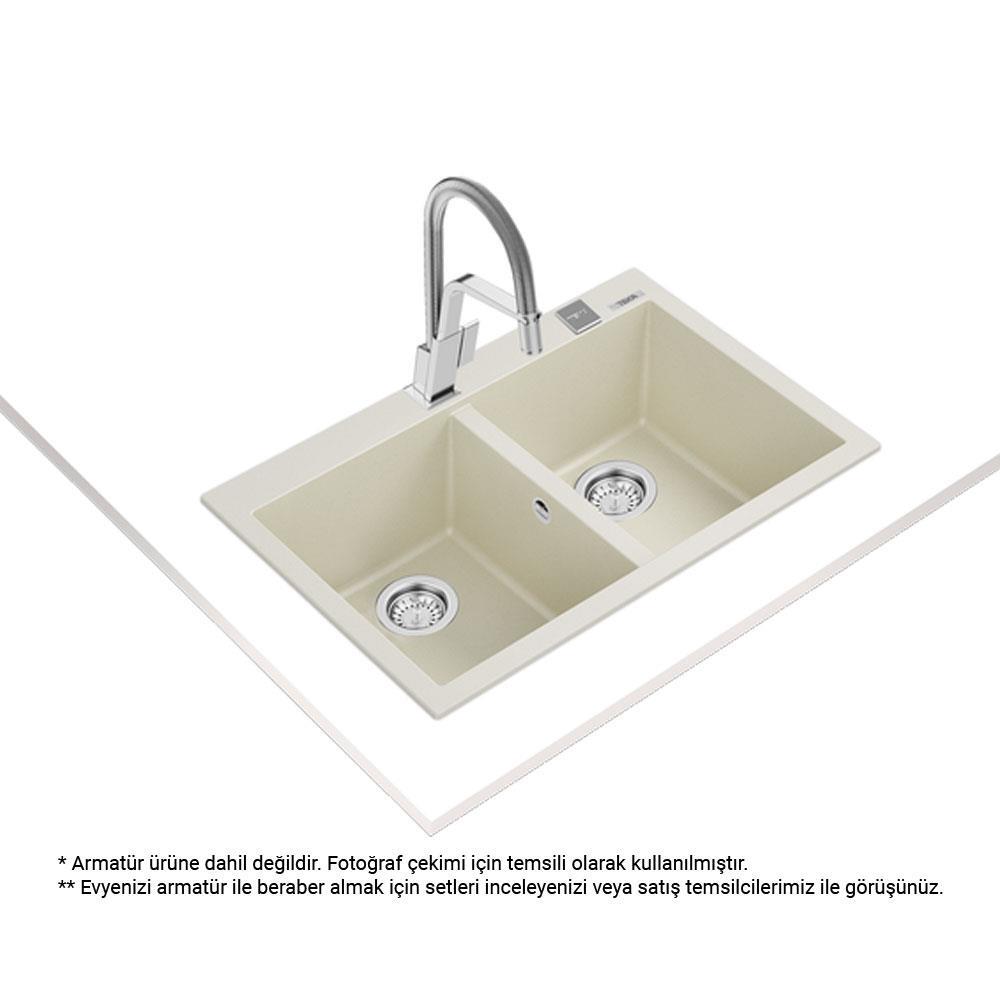 Teka FORSQUARE 790 TG Çift Hazneli Granit Evye, Bright Cream (krem), Tezgah üstü, 79x50cm