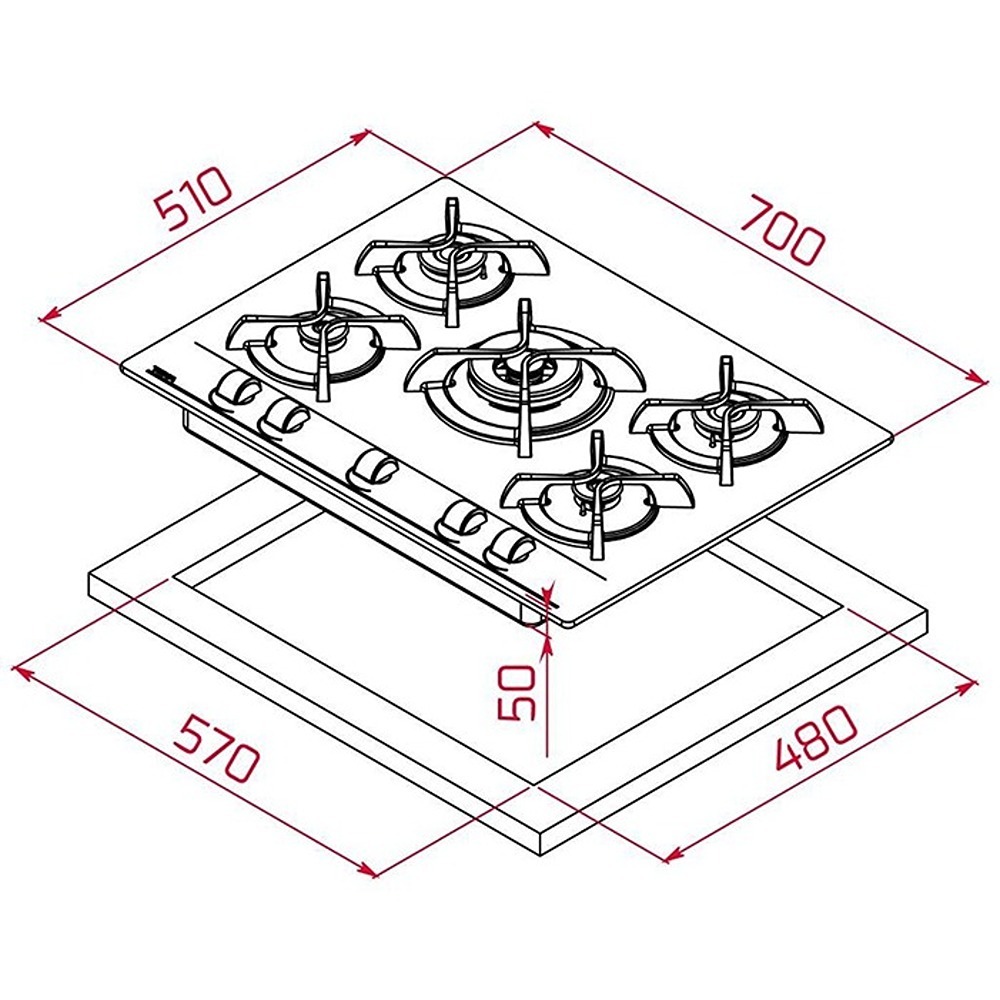 + Montaj - Tezgah kesim ölçüleri; Genişlik 570mm, Derinlik 480mm, Yükseklik 49mm