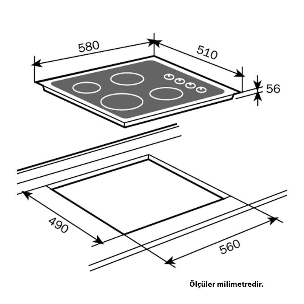 Tezgah kesim/montaj ölçüleri 56x49 cm,