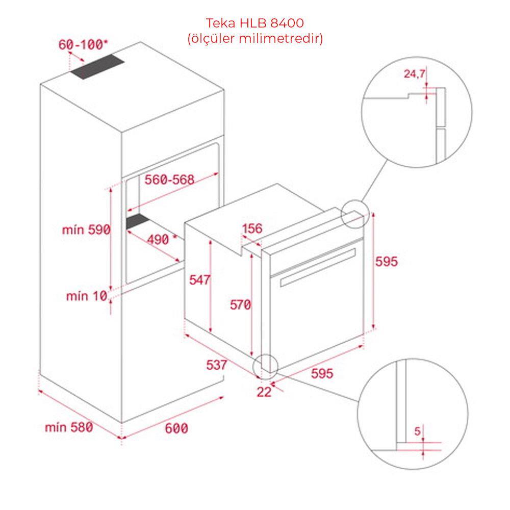 - Dış ölçüler: Yükseklik 59,5 cm, Genişlik 59,5 cm, Derinlik 56 cm,
