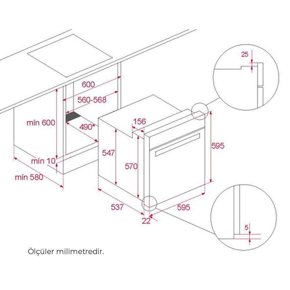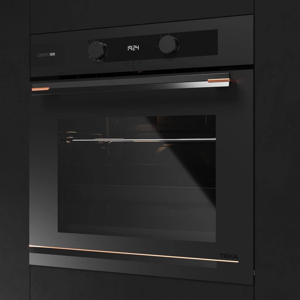Infinity G1 serisinin şık mat siyah tasarımı ve bakır detayları, mutfağınıza estetik bir dokunuş katarken, pirolitik temizleme sistemi ile zahmetsiz temizlik sağlar.