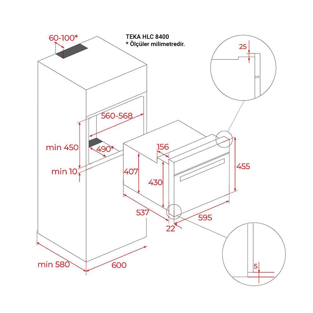 Teka HLC 8400 BK Kompakt Ankastre Fırın, 45cm Yükseklik, Siyah, 9 Program, HydroClean, Dokunmatik, 45 LT