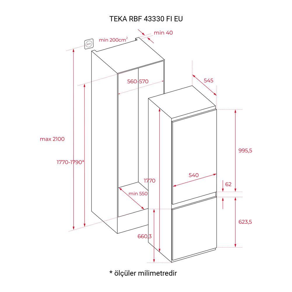 Teka RBF 43330 FI EU Ankastre Buzdolabı, No Frost, 242 LT