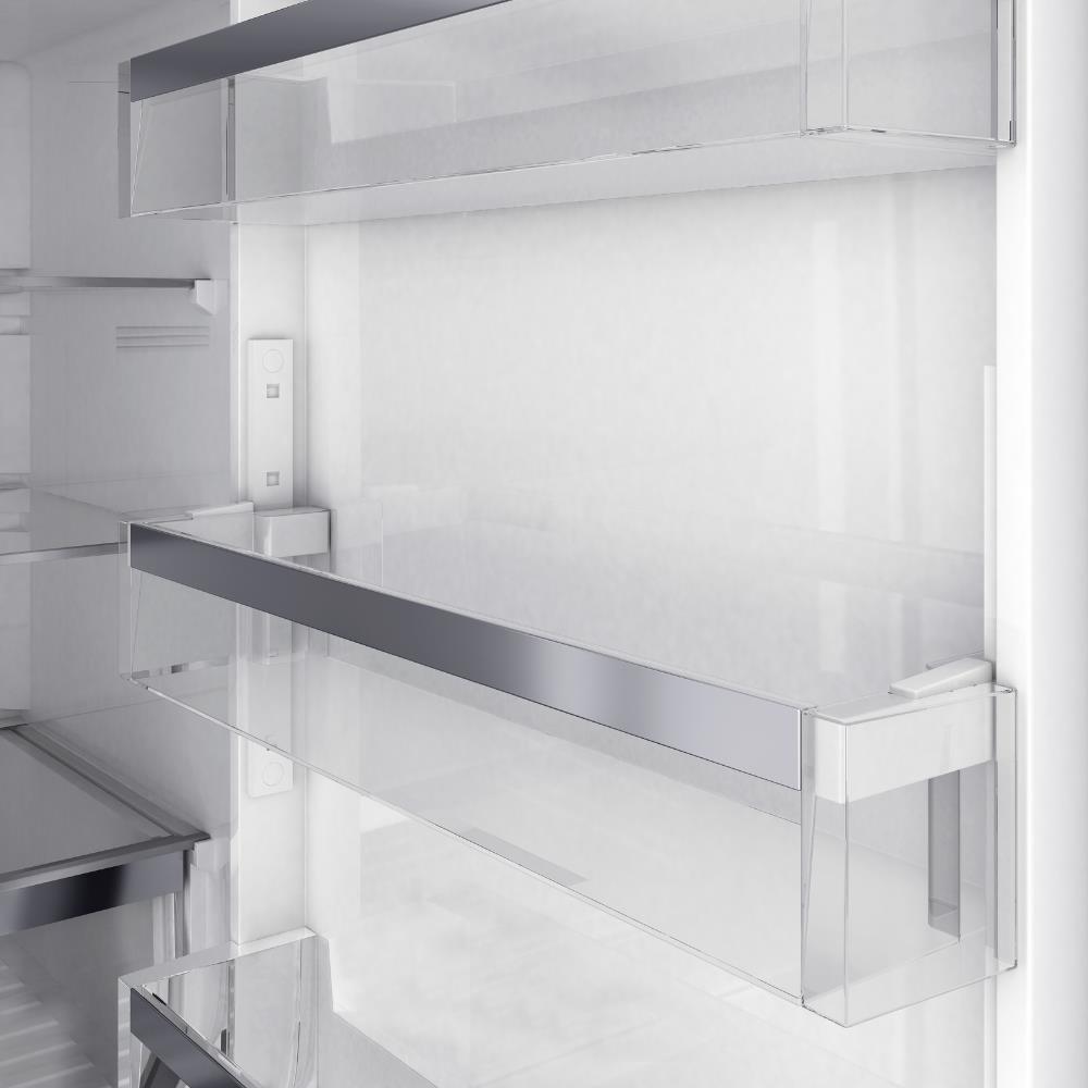 Entegre sap, çocuk kilidi, ayarlanabilir cam raflar, Twister buz makinesi ve iç LED aydınlatma gibi birçok akıllı detayla kullanım kolaylığı sunar. Geniş 70 cm en ölçüsü ve brüt 510 litrelik iç hacmiyle büyük aileler için ideal bir depolama kapasitesi sağlar.