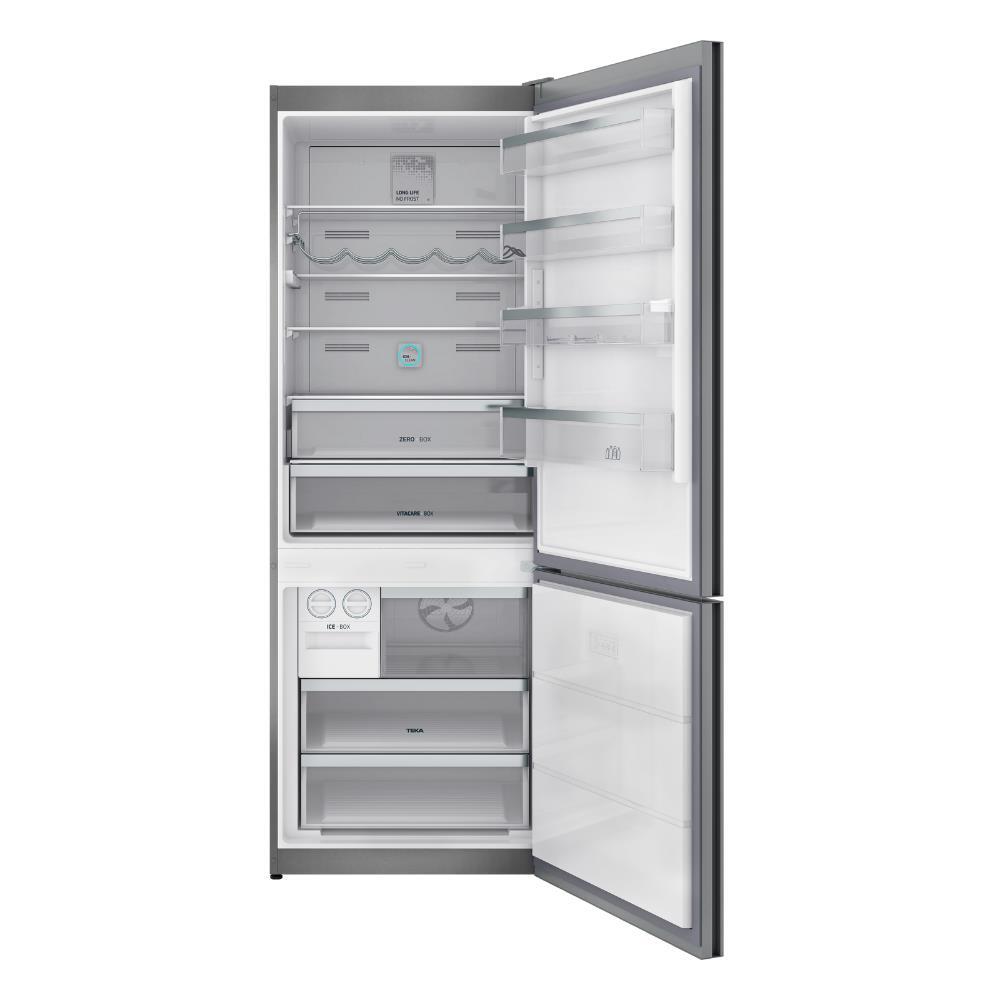 ZeroBox ve nem düzenleyicili VitaCare Box çekmeceleri meyve, sebze ve et ürünlerini ideal koşullarda muhafaza eder. Twister buz makinesi, ayarlanabilir cam raflar, LED iç aydınlatma ve elektronik sıcaklık kontrol paneli ise kullanım konforunu artırır. Entegre sap, çocuk kilidi ve yönü değiştirilebilir kapılar ile her açıdan fonksiyonel bir tasarım sunar.