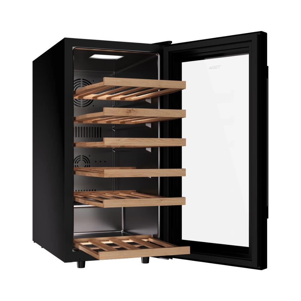 83 Litre net kapasitesi ve özel ahşap raf tasarımı sayesinde 32 şişeye kadar içeçeği soğutabilen RVF 10032 GBK modeli 5 ile 18 derece arasında soğutma ayarı sunmaktadır.
