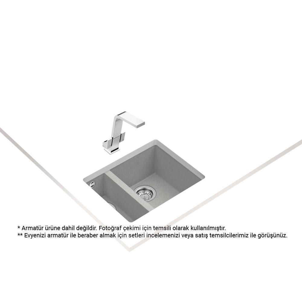 Teka SQUARE 560 TG STONE GREY Granit Evye, Gri, 1,5 Hazneli, Tezgah Altı