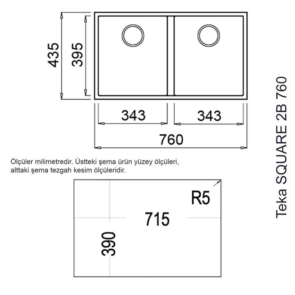 Teka SQUARE 2B 760 TG BLACK Granit Evye, Tezgahaltı