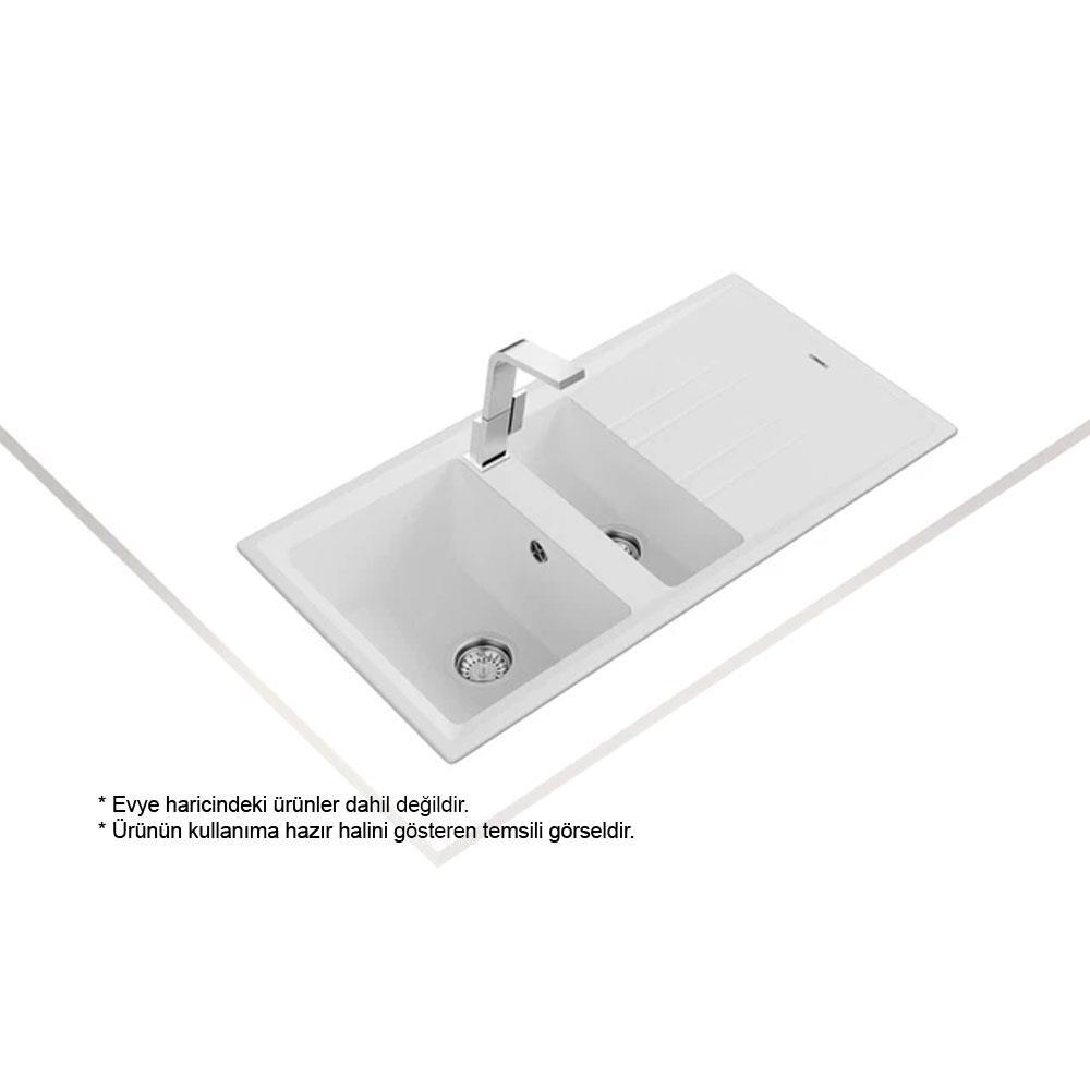 Model: 115360005, Beyaz renk, 1,5 hazne, Damlalıklı, Çift yönlü, Tezgah üstü, 100 x 51 cm