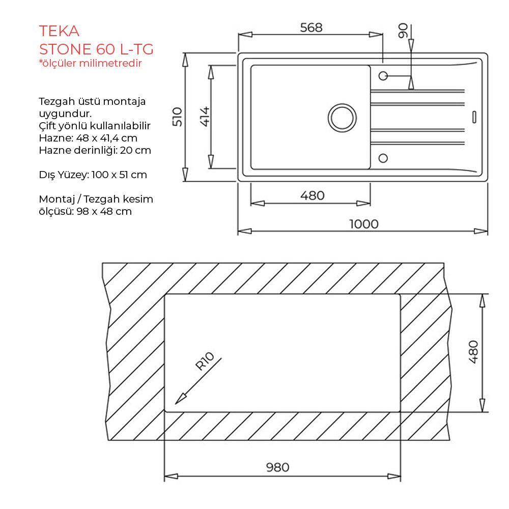 Mutfaklarınızda şıklığı ve fonksiyonelliği bir arada sunan Teka Stone 60 L-TG granit evye, modern tasarımı, üstün malzeme kalitesi ve geniş kullanım alanı ile öne çıkıyor. Ürünün özellikleri;