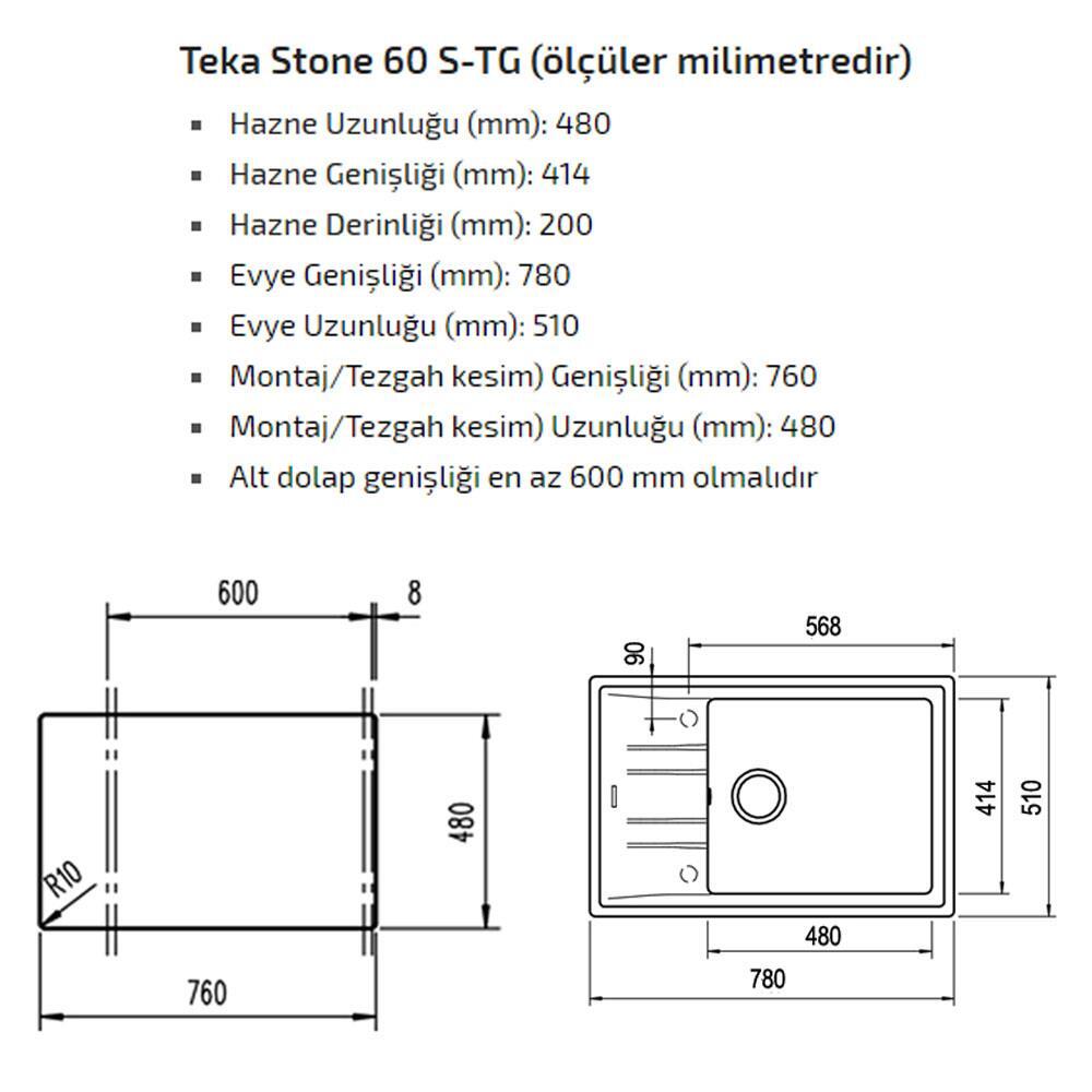 Mutfaklarınızda şıklığı ve fonksiyonelliği bir arada sunan Teka Stone 60 S-TG granit evye, modern tasarımı ve üstün malzeme kalitesiyle öne çıkıyor. Ürünün özellikleri;
