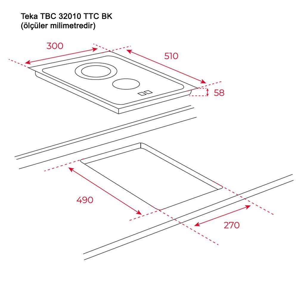 Teka TBC 32010 TTC BK Ankastre Domino Ocak, Siyah Cam, 30cm
