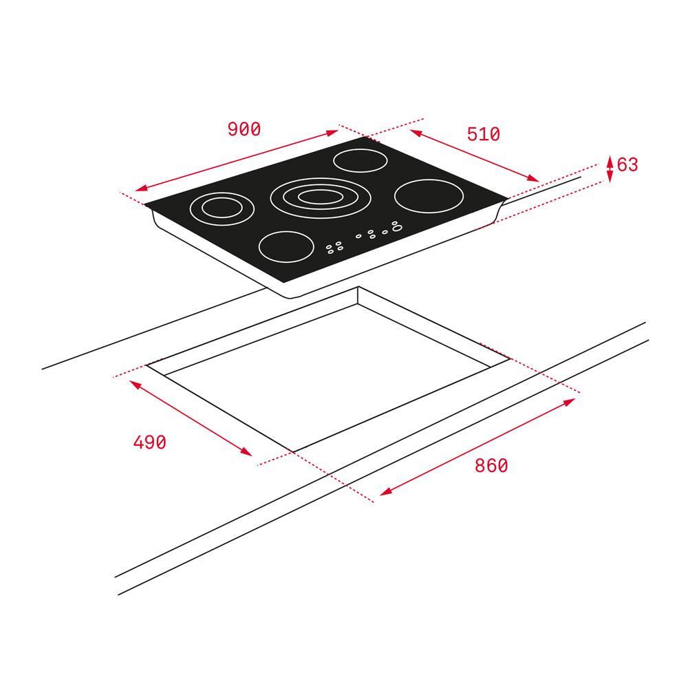 TEKA TR 951 Ankastre Elektrikli Cam Ocak, Siyah, 90 cm,
