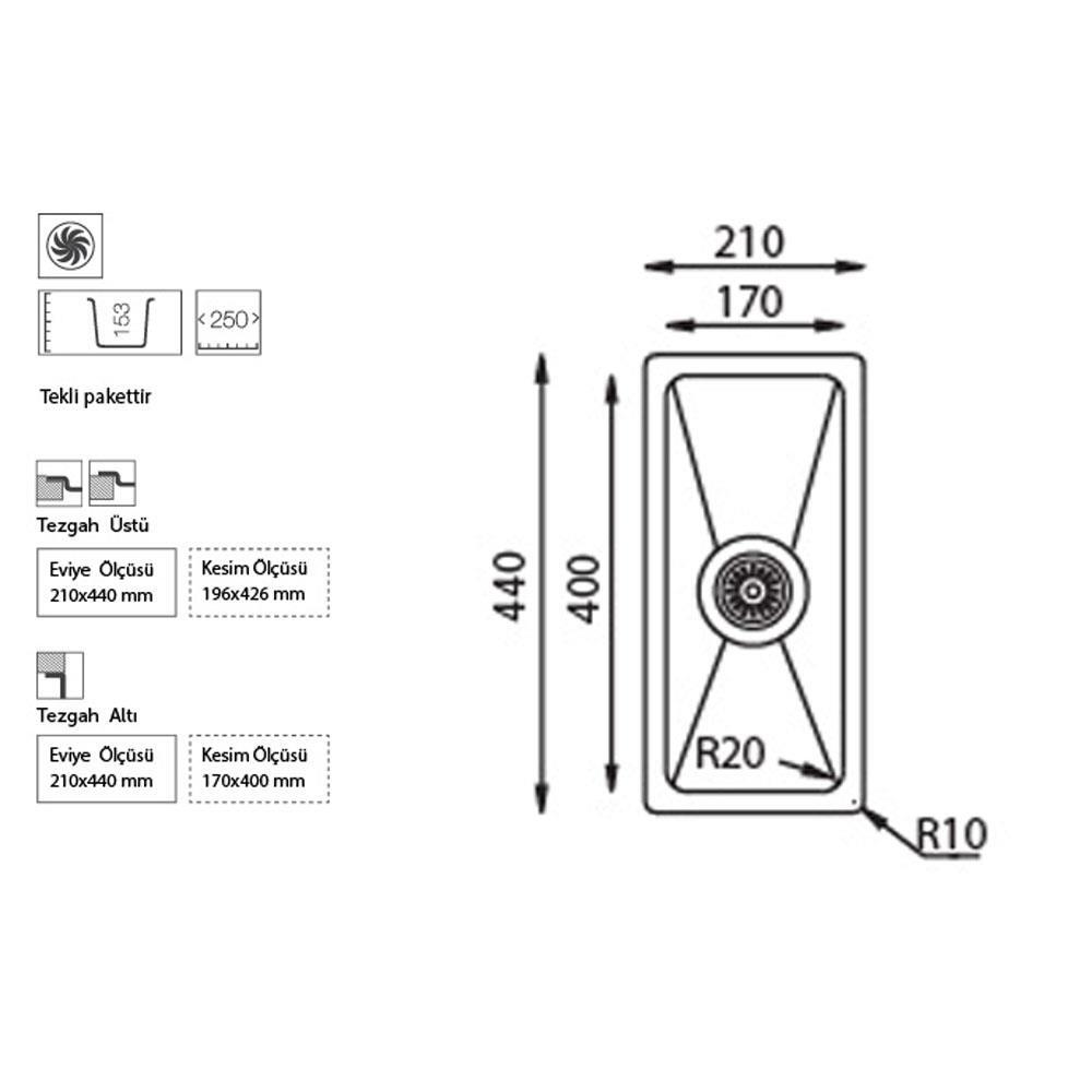 Ukinox ME 171 Evye, Tek hazneli, Tezgah altı