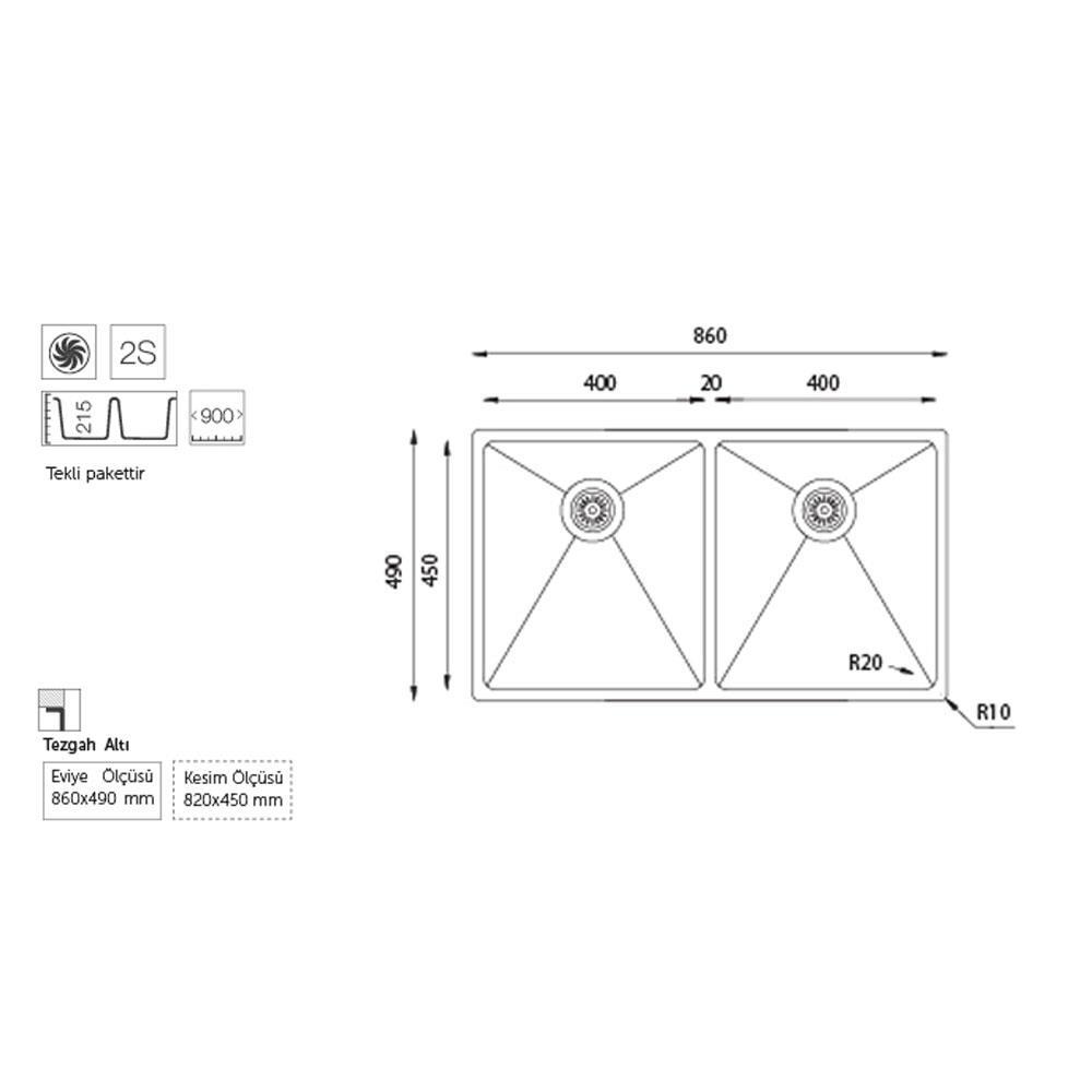 Ukinox ME 400.50 Evye, Çift hazneli, Tezgah altı