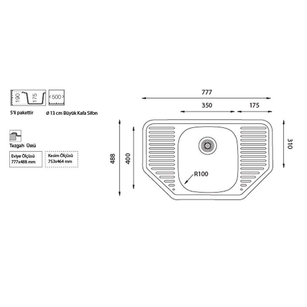 Tezgah üstü montaj için kesim ölçüsü; 753 x 464 mm,
