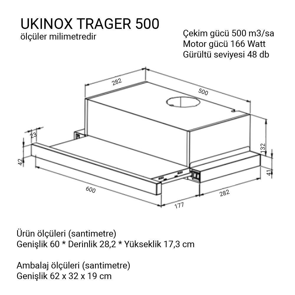 Ukinox TRAGER I 500 Sürgülü Aspiratör, Inox, 60cm, 500m3